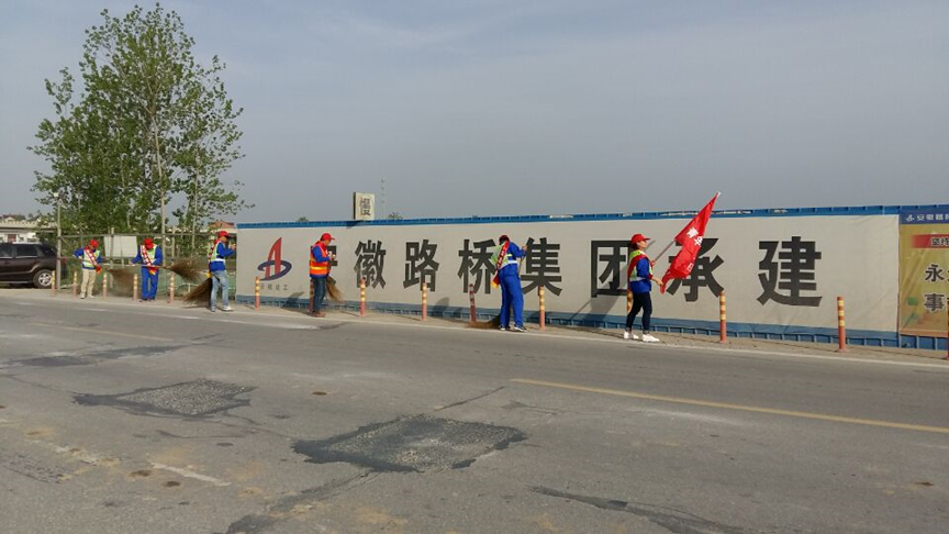4月17日下午,無為西互通立交項目團支部在“學雷鋒志愿者活動月”組織愛護環境文明施工活動,對項目施工現場和S319省道交接處的建筑垃圾、灰塵進行清除。