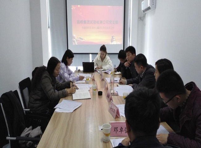 根據路橋集團黨委統一安排,2月28日,檢測公司黨支部召開2017年度專題組織生活會議。會議由檢測公司黨支部書記、董事長卞寶林主持,路橋集團黨委委員、總工程師王潔,黨委工作部副主任徐慧玲蒞臨指導。
