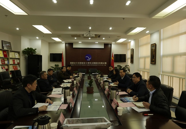 11月23日,公司黨委書記、董事長、總經理盛明宏一行前往安徽省交通規劃設計研究總院股份有限公司洽談合作,安徽省交通規劃設計研究總院股份有限公司黨委副書記、董事長王吉雙熱情接待了盛董事長一行。