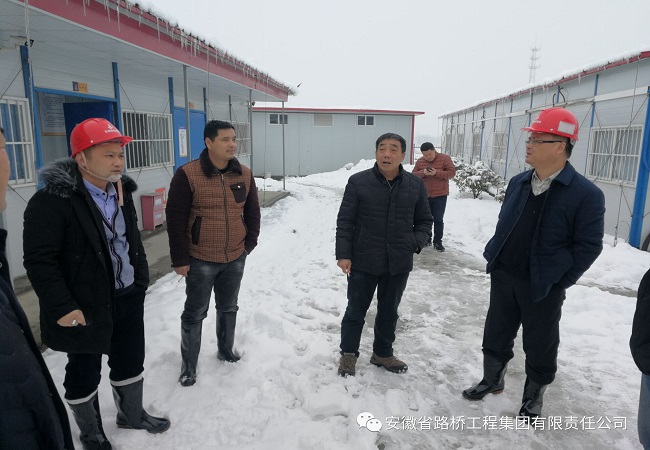 元月5日,在經歷了一場暴雪之后,公司黨委委員、紀委書記、工會主席王勝利對合安高速01標、蕪合高速3標、丙鋪路以及九龍路等在肥部分項目進行了視察、慰問,公司安全部、一分公司、三分公司負責人陪同并對項目雪后安全防護措施和隱患清除情況進行檢查。