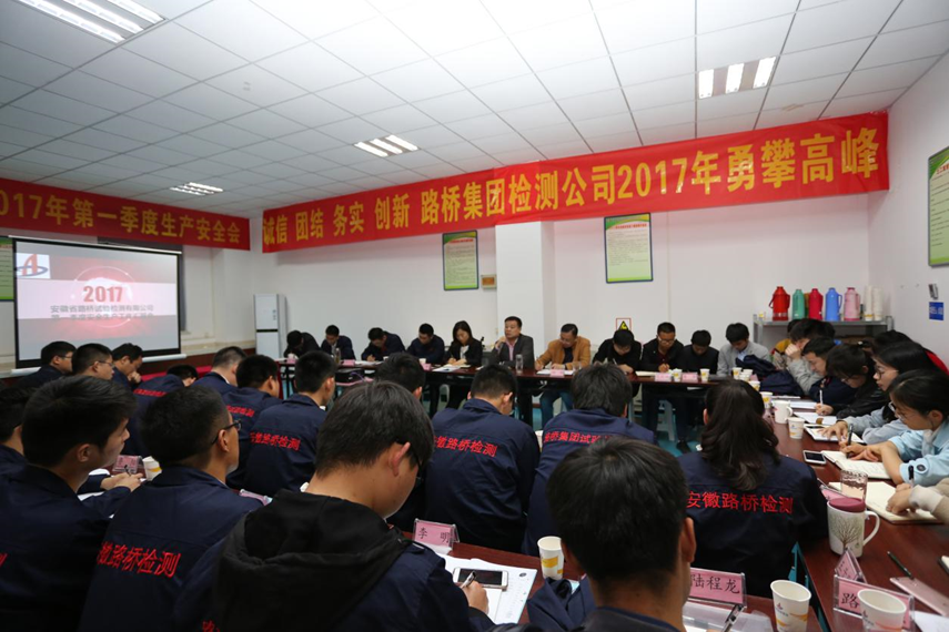 4月8日,檢測公司在肥召開2017年試驗檢測人員內業資料培訓暨第一季度生產安全會,會議由檢測公司副總經理佐群主持。路橋集團黨委委員、總工程師王潔蒞臨會議并作重要講話。檢測公司領導班子成員、機關各部門、各項目試驗室負責人近五十人參加會議。
