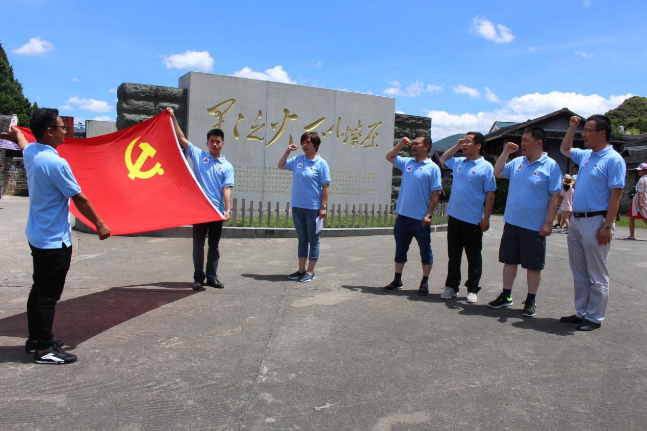 在主席園前,在鮮紅的黨旗下,面對“星星之火,可以燎原”的題詞,公司新入黨的4名黨員右拳高舉,莊嚴宣誓?!拔抑驹讣尤胫袊伯a黨,擁護黨的綱領,遵守黨的章程,履行黨員義務,執行黨的決定,嚴守黨的紀律,保守黨的秘密,對黨忠誠,積極工作,為共產主義奮斗終身,隨時準備為黨和人民犧牲一切,永不叛黨?!毙曼h員神情嚴肅認真,聲音鏗鏘有力。