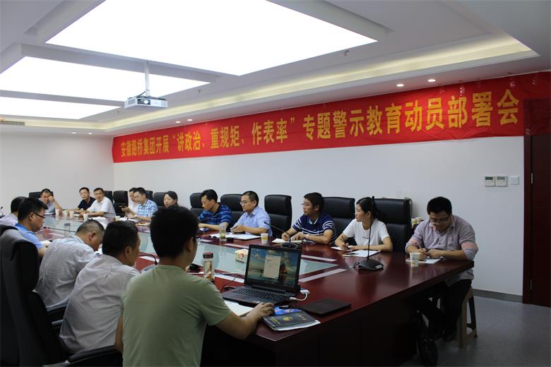 7月30日,安徽路橋集團召開“講政治、重規矩、作表率”專題警示教育動員部署會議,公司黨委書記、董事長、總經理盛明宏主持會議并講話。公司領導班子、各支部書記、機關部門負責人及部分項目經理參加會議。
