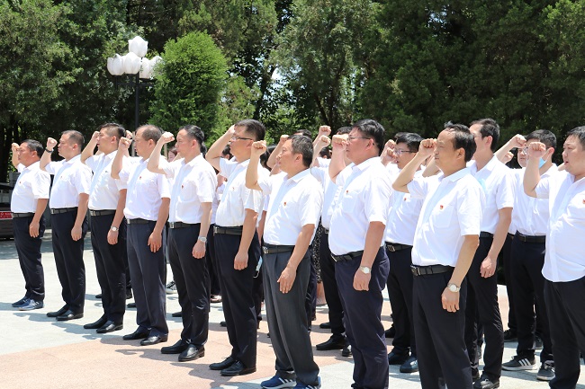 革命烈士紀念塔下,面對鮮艷的中國共產黨黨旗,全體黨員重溫入黨誓詞,回憶入黨初心,誓言鏗鏘,激昂回響,廣大黨員干部心靈再次受到洗禮、精神得到激勵、思想得到啟迪。隨后先后參觀了金寨縣紅軍紀念堂、紅軍烈士墓園。