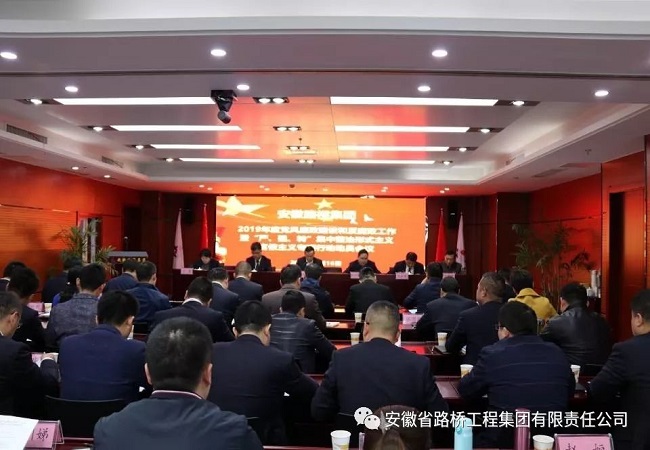 3月16日下午, 安徽路橋集團2019年度黨風廉政建設和反腐敗工作會暨“嚴、強、轉”集中整治形式主義官僚主義專項行動動員會在安建國際大廈8樓會議室召開。公司領導班子,機關部門正副職,所屬各單位黨政主要負責人、黨總支(支部)紀檢委員、黨群部門負責人等50余人參加會議。會議由公司黨委副書記、總經理歐陽志宜同志主持,公司黨委書記、董事長盛明宏同志出席會議并講話。
