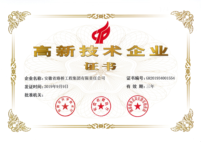 2019年12月23日,公司喜獲由安徽省科學技術廳、安徽省財政廳、國家稅務總局安徽省稅務局聯合頒發的“高新技術企業”證書,標志著公司正式邁入國家高新技術企業行列。公司被成功認定為國家高新技術企業,既是對我公司自主研發和技術水平的認可,也是對我公司創新工作的一種激勵,為公司在促進企業科技轉型、提升企業品牌形象、提高企業市場價值等方面都具有重要作用。