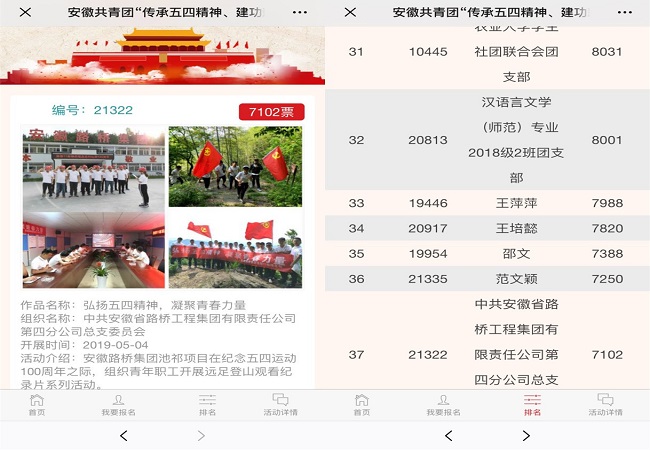 推選的池祁項目 “弘揚五四精神,凝聚青春力量”主題黨團系列活動,有遠足登山、重溫入團誓詞和觀看紀錄片三個環節,旨在帶領項目部廣大青年黨團員體驗古人開山修路智慧,培養青年精益求精的“工匠精神”,展現路橋集團人團結友愛的精神面貌。