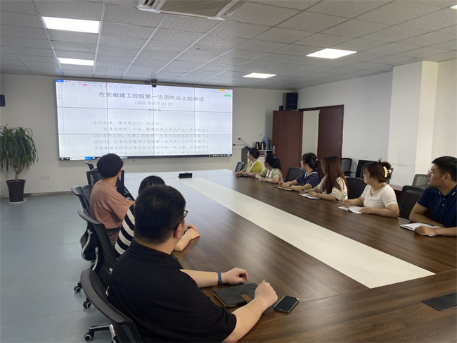 2022年7月4日上午,公司機關團支部組織團員學習宣貫建工控股黨委書記、董事長趙時運《在安徽建工控股第一次團代會上的講話》和建工控股團委書記、黨工部副部長聶猛所作的《團委工作報告》,團員們認真聆聽,學習熱情高漲。會后,團員們紛紛表示作為新時代的中國青年,認真踐行“請黨放心,強國有我”的錚錚誓言,始終做到對黨忠誠、擔當實干、廉潔自律,為加快建設一流安徽建工,打造具有重要影響力的“三地一區”和現代化美好安徽作出自己的貢獻,以優異的成績迎接黨的二十大勝利召開!