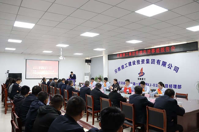 為大力弘揚勞模精神、勞動精神、工匠精神,充分發揮勞模先進示范引領作用,11月23日下午,安徽建工集團“榜樣的力量”勞模先進事跡報告團巡回報告會走進建工建投集團宣涇高速01標項目。集團工會女工委副主任饒曉寧出席活動并講話,公司黨委副書記干戈,二分公司黨總支書記、副總經理、工會主席劉峰等參加報告會。