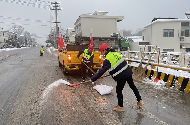 2023年12月18日下午,為保障當地居民的生活安全和正常出行,繁昌區G236改造工程項目黨支部黨員們、青年團員們向雪而行,主動前往G236沿線道路清掃積雪。