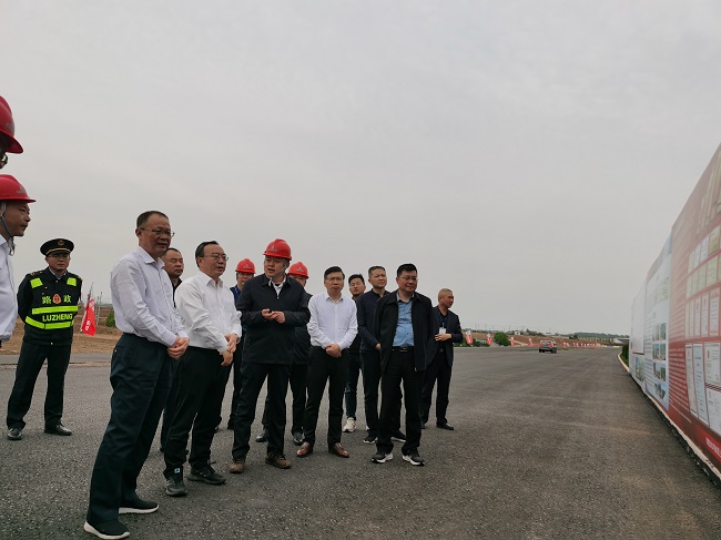 4月27日下午,安徽省交通運輸廳黨組書記、廳長聶愛國一行赴來六高速04標項目調研指導,公司黨委書記、董事長任杰,黨委委員、副總經理江仲明,二分公司黨總支副書記、總經理張立兵等參加調研。