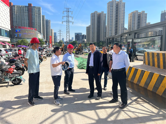 張剛一行深入潛山路(望江西路-長江西路)改造工程項目施工現場,全線查看項目施工情況。針對下一步安全質量管理,張剛提出具體要求:一是抓好安全文明施工。各管線單位交叉作業,安全意識不能松懈。圍擋噴淋要常開,同步做好裸土覆蓋、通行道路保潔等揚塵防治工作;二是加強質量管理。收邊收口要注重細節,強化過程管控,精益求精;三是主動回應市民關切。與沿線居民建立良好溝通機制,把施工帶來的投訴降至最低;四是加強沿線管線保護。高溫季節來臨,任何管線破壞必將給沿線居民生活帶來極大干擾,施工過程要慎之又慎。五是做好宣傳工作。黃山路以南放行區域,交通受供電桿線影響,要做好宣傳引導,減少輿情壓力。