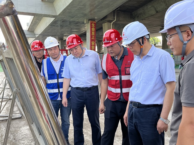 2023年7月14日下午,合肥市重點工程建設管理局局長張剛一行赴建工建投集團金寨路高架橋綁寬項目施工現場開展“夏日送清涼”慰問活動,建工建投集團黨委書記、董事長任杰,黨委委員、副總經理王秋華等參加慰問。