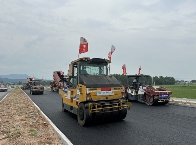 建工建投集團繁昌S334項目施工現場,36度高溫的“烤”驗沒有阻擋任何一位施工人員熱火朝天的干勁,工人們站在滾燙的瀝青料上,頭頂烈日、揮汗如雨,全身心地投入到瀝青中面層攤鋪施工中,為實現最終通車目標發起沖刺。