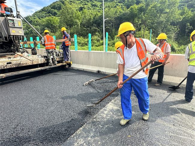 炎炎夏日,建工建投集團G105、S237滸山湖至岳武高速源潭出入口段改建工程(第二期)設備租賃公司項目員工不畏高溫天氣,搶工期,趕進度進行瀝青下面層攤鋪工作,項目員工全員在崗確保瀝青攤鋪工作順利進行,保障項目早日交工。