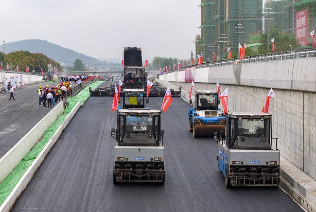 “無人機群智能攤壓技術”是無人駕駛、協同調度、群控安全、智能壓實技術和圖像識別等關鍵技術的集成,實現了路面機械設備的集群化自動協同作業。2023年6月,建工建投集團將該技術應用到合肥市青海路項目瀝青面層施工中,為該技術在安徽省內市政項目的首次應用,同年9月,在G312合六路(新橋大道-侯店路)工程一標段項目西城大道下穿段瀝青面層施工引入無人攤壓技術,為該技術在安徽省城市快速路的首次應用。