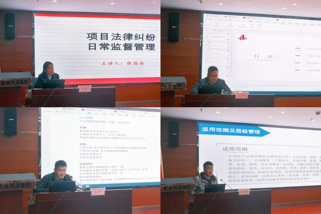 培訓中,公司法律合約部、工程管理部、成本核算部、財務管理部結合集團《項目管理類文件選編》進行專題授課,分別圍繞項目法律糾紛日常監督、工程招標、成本管控和“三公經費”使用等方面為大家講授。公司紀檢室從案件查辦有關規范要求、日常監督檢查注意事項等方面進行了實務培訓。最后,還開展了項目管理制度知識測試。