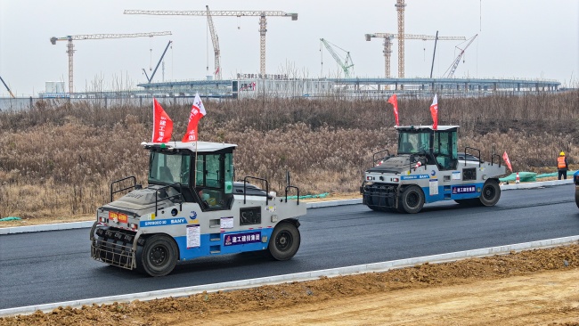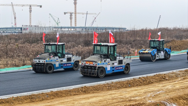 12月25日,建工建投集團合肥市科學島北路等4條道路工程項目瀝青下面層無人攤壓施工順利進行,開啟合肥未來大科學城片區智能建造的新征程。