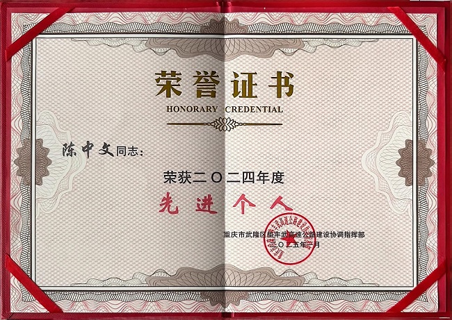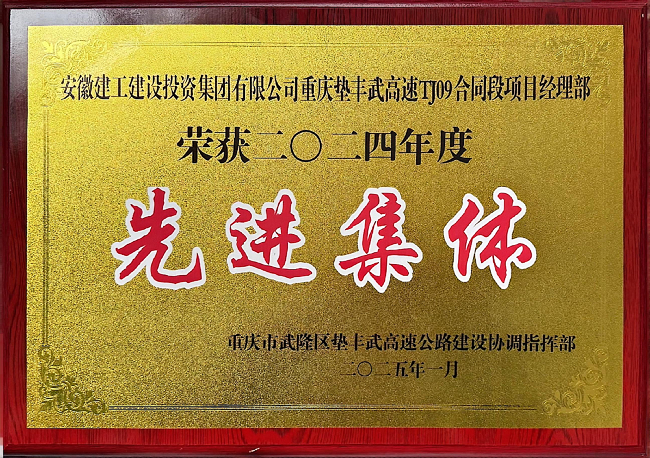建工建投集團重慶墊豐武高速TJ09標項目榮獲“2024年度先進集體”稱號,陳中文同志榮獲“2024年度先進個人”稱號。