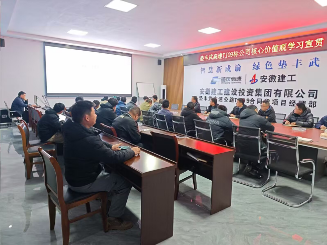 2025年2月5日起,一分公司所屬各項目全面學習貫徹安徽建工集團核心價值觀,深入解讀集團核心價值觀的內涵與意義。