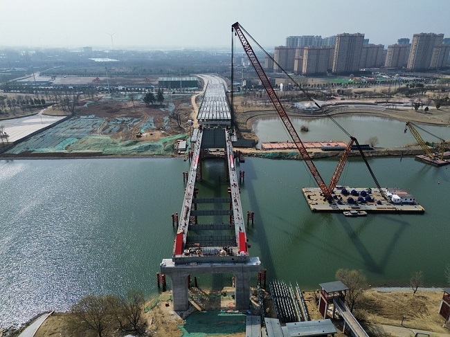 近日,隨著最后一節鋼箱梁精準吊裝到位,由建工建投集團承建的太和縣人民路潁河大橋及接線工程建設項目上跨內河通航河道鋼箱梁主梁順利合龍,標志著該項目關鍵節點圓滿完成。