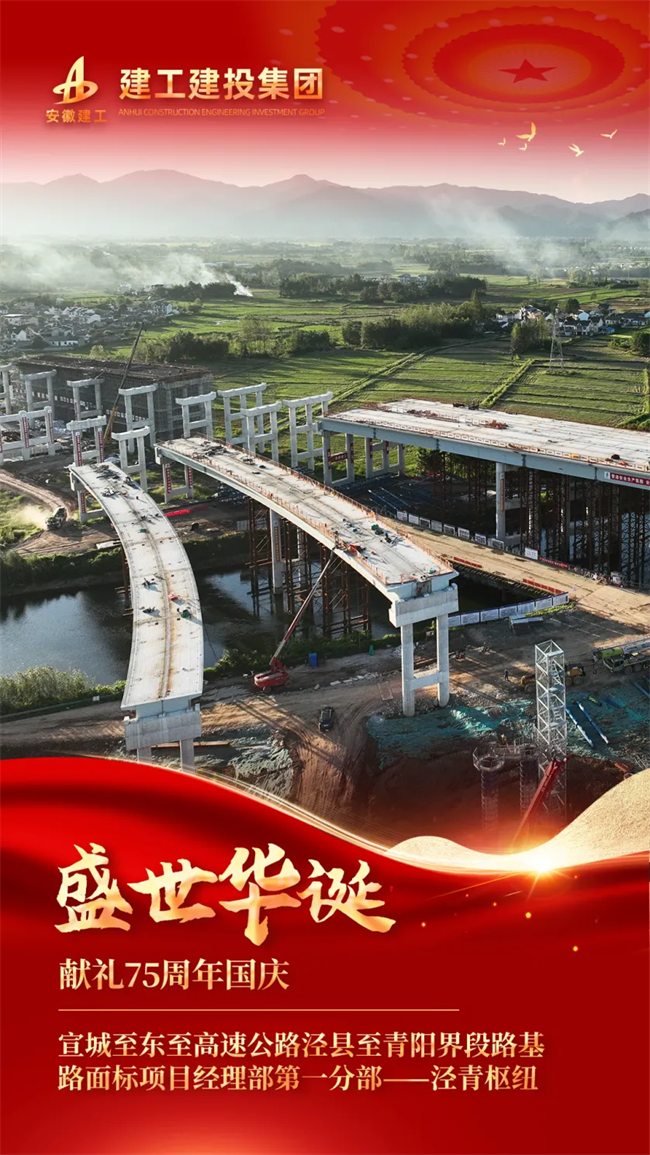 涇青高速一分部涇縣樞紐主線特大橋全長1279米,上部結構包括預制箱梁、現澆箱梁、鋼箱梁,部分橋墩高度超過20米,橋梁跨徑超過60米,結構形式復雜,技術難度大,安全風險高。該橋與在建宣涇高速順接,連續上跨蕪黃高速A匝道、青弋江灌區總干渠等關鍵節點,施工內容包括通行高速公路涉路導改,二級飲用水源地涉水施工等難點,涉及產權單位多,組織協調難度大,是涇青高速公路項目的關鍵控制性工程。