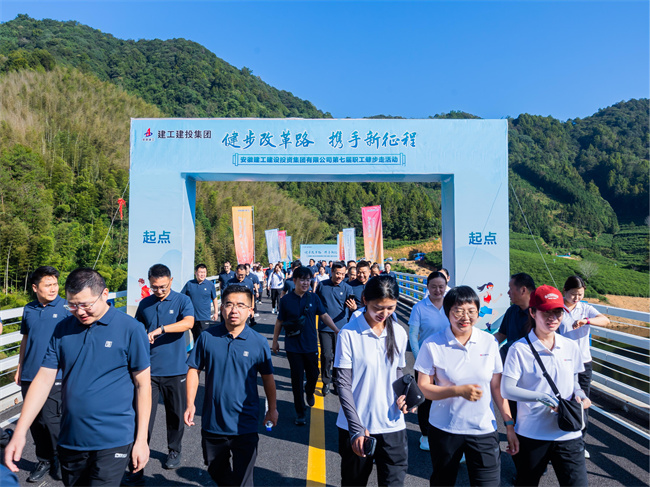 青山不言,繪就千秋畫卷;綠水無聲,彈奏萬古琴弦。為迎接國慶佳節的到來,9月28日,安徽建工建設投資集團有限公司“健步改革路 攜手新征程”第七屆職工健步走活動在涇縣牛嶺水庫項目成功舉辦。涇縣縣委副書記、縣委黨校常務副校長楊培靖出席活動并講話,涇縣牛嶺水庫工程建設管理處主任邢柯親臨活動現場,公司黨委書記、董事長任杰宣布活動開始。安徽省高速監理公司、涇縣牛嶺水庫工程建設管理處、公司領導、分子公司領導班子及機關全體員工等100余人參加活動。