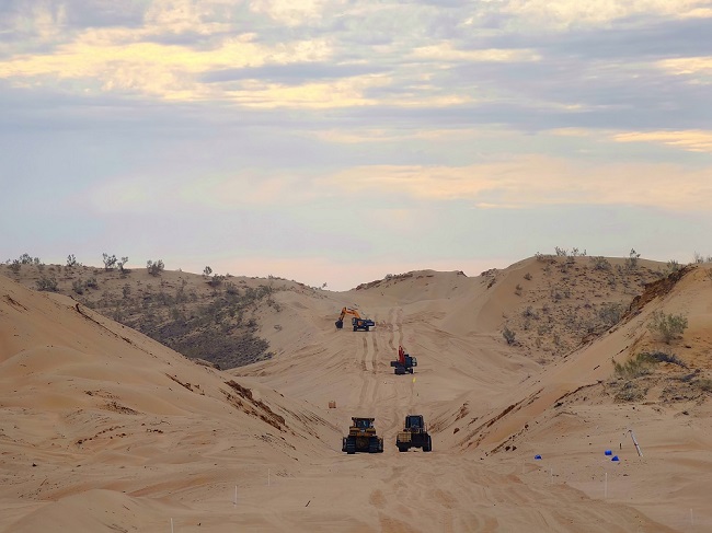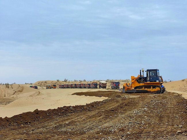 從烏魯木齊啟程,經過近4個小時路途,其中有3個小時皆為荒蕪的無人區沙漠戈壁地段。在到達項目施工現場后,干戈實地查看項目生產進度,詳細了解項目員工的生活工作環境。對項目員工在沙漠戈壁無人區努力戰勝艱苦施工環境,順利完成47.76公里的路基填筑,給予了高度贊賞和充分肯定。同時,干戈要求項目管理人員務必做好防暑降溫和安全生產工作,強化源頭管控,切實完成各項工作,確保如期達成各項節點目標。