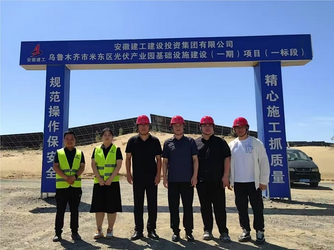 七月似火的驕陽炙烤著大地,沙漠戈壁地表溫度飆升到極高。7月26日,公司黨委副書記、工會主席干戈深入新疆維吾爾自治區古爾班通古特沙漠地帶,慰問堅守在烏魯木齊光伏產業園基礎設施建設工程總承包項目的一線員工,為奮戰在43攝氏度高溫下作業的職工送清涼、道辛苦、鼓干勁。