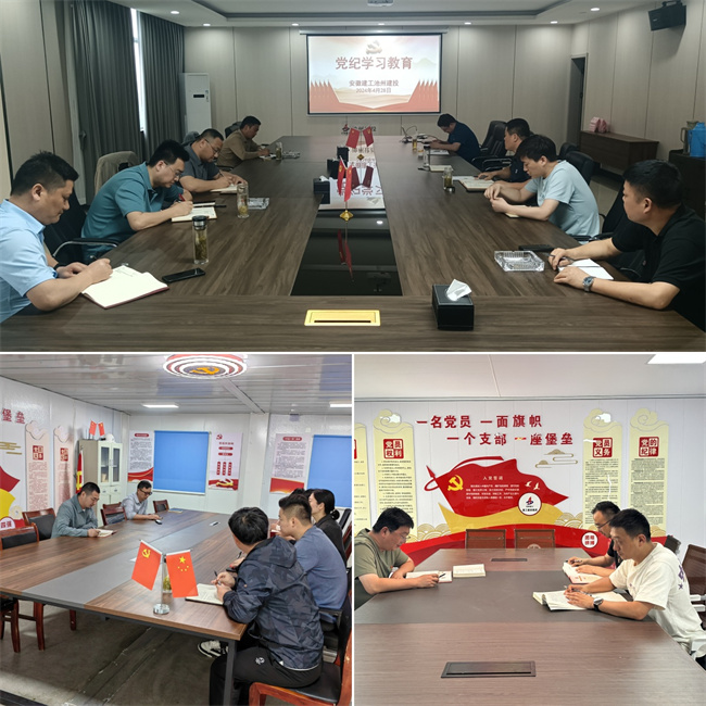自四月份開展黨紀學習教育以來,設備租賃公司黨支部把黨紀學習教育與“三會一課”結合起來,并通過周例會、總辦會等會議形式加強學習,把黨紀學習教育做在日常、融入平常,切實將黨紀教育與黨性教育、廉潔教育結合起來,真正做到心有所畏、言有所戒、行有所止。