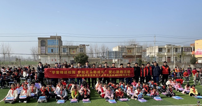 關愛兒童成長,傳送雷鋒精神。近日,安徽路橋集團第五分公司阜淮高速項目臨時黨支部攜項目臨時團支部,與共建單位穆莊村黨支部、公橋鄉中心學校志愿者們一起前往阜南縣公橋鄉陳莊小學開展“學雷鋒進校園 護航花朵助成長”愛心助教活動。此次活動共吸引20名志愿者參加,其中項目部黨員志愿者6人,團員志愿者8人。