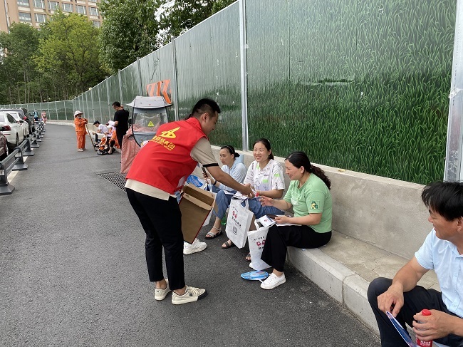6月14日,項目部青年志愿者們前往合肥市168中學考點,開展愛心助考活動。炎炎烈日下,志愿者們為考生提供考試用品及防暑降溫藥品,并送上暖心的祝福和鼓勵。為給廣大考生提供安心、舒暢的考試環境,青年志愿者們還積極協助交警同志指揮交通,及時疏散考點人流。