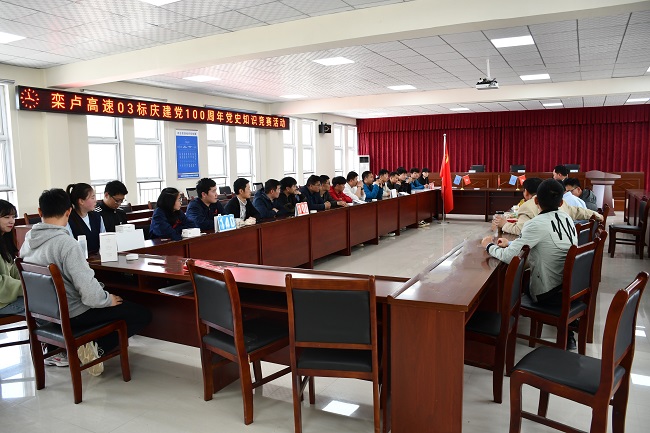 學習百年黨史,汲取奮進力量。4月29日下午,欒盧高速03標為慶祝中國共產黨成立100周年,扎實開展黨史學習教育,項目黨支部聯合項目工會舉辦了黨史知識競賽,并邀請項目公司、駐地辦等單位參加。旨在通過競賽推動黨史學習教育深入群眾、深入基層、深入人心,真正做到學黨史、悟思想、辦實事、開新局。