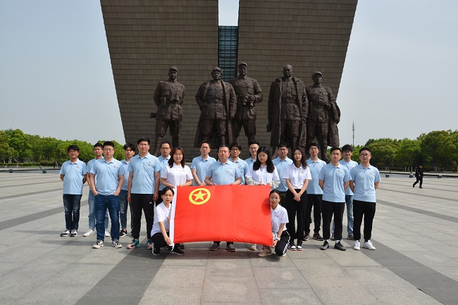 在渡江戰役紀念館,百萬雄師過大江的巨型浮雕映入眼簾,使團員們深刻感受到了渡江戰役的艱苦奮斗和革命先烈們不怕犧牲的英雄主義精神。全體團員青年緊握右拳,重溫入團誓詞、重憶入團經歷、重問入團初心。