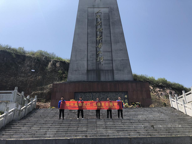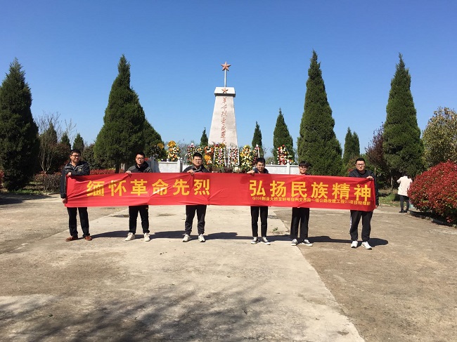 4月4日,阜淮高速-03標前往淮濱縣烈士陵園,向在抗日戰爭中為解放淮濱不惜拋頭顱灑熱血的十九位無名革命先烈敬獻花籃、清掃墓碑,并瞻仰“革命烈士永垂不朽”紀念碑。最后,黨員同志在紀念碑下重溫入黨誓詞,感受歷史洪流背后的熊熊戰火。