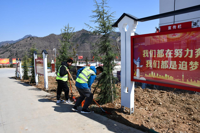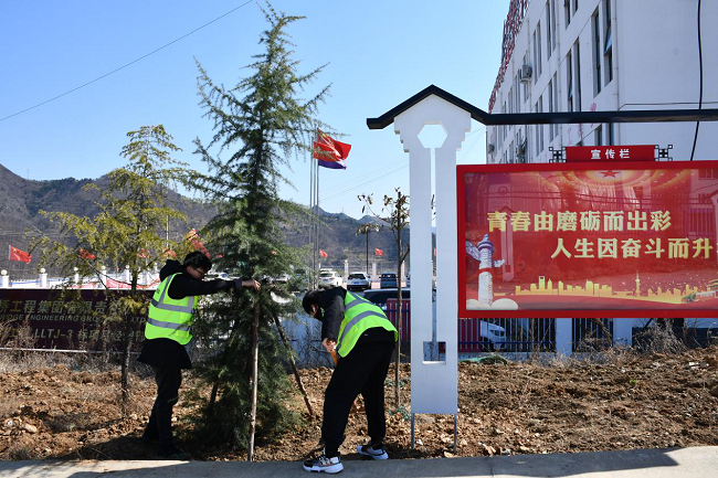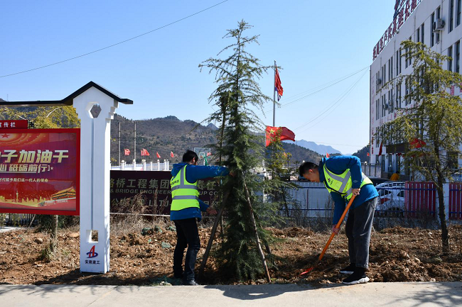 陽春布德澤,萬物生光輝。正是春風送暖的好時節,欒盧項目的員工們在項目部所在的道路兩側栽下棵棵樹苗,留下片片新綠。大家默契配合、分工協作,揮鍬鏟土、填入青松、扶直樹苗、培實新土、提水澆灌,每一道工序都一絲不茍的完成。經過一上午的栽種,項目部主干道兩側全部種上青松。