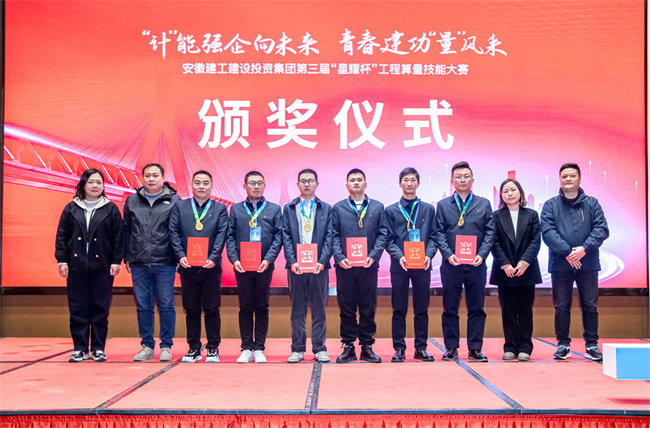 “計”能強企向未來,青春建功“量”風采。12月12日,公司團委組織的第三屆“星耀杯”工程算量技能大賽在安徽水利和順大酒店(合肥店)圓滿舉辦,安徽省建設建材工會(省住建廳文明辦)四級調研員邱亮出席開幕儀式并宣布大賽開幕,建工控股黨委組織部(人力資源部)副部長、團委書記聶猛蒞臨現場并作指導講話。公司黨委副書記干戈,公司黨委委員、副總經理、總工程師陳莘,公司黨委委員、紀委書記王學梅,公司黨委委員、副總經理王秋華,公司黨委組織部(工會、團委)、成本核算部、市場開發與投資部相關負責人,所屬各單位黨組織書記,團組織負責人,一線青年職工等100余人參加活動。