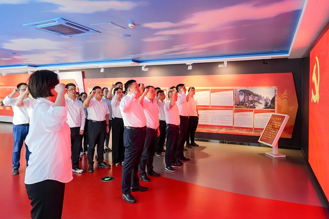 在展覽館內,大家跟隨講解員的步伐,依次參觀了序廳和“黨性修養、立身之本”、“理想信念,精神之鈣”、“紀律規矩、行為底線”、“作風形象、人心向背”、“不忘初心、繼續前進”五個展廳,并觀看了教育片《信仰的力量》。參觀、交流、互動、感悟于一體的沉浸式黨性教育現場教學,使現場全體黨員真切感悟到共產黨人為中國人民謀幸福,為中華民族謀復興的初心和使命,進一步引導黨員干部堅定理想信念、提升黨性修養、激發擔當作為。
