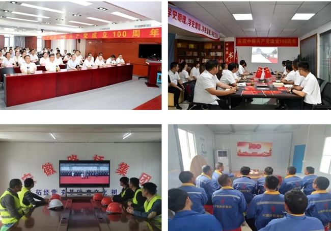 公司機關黨支部舉辦“學黨史 憶傳統 迎端午”答題活動,讓職工感受中國傳統節日內涵的同時激發其學習黨史的熱情;各單位黨組織書記走進施工現場,帶頭宣講黨的光輝歷程,激勵干部職工堅守初心、踐行使命;檢測公司黨總支舉行“學黨史、傳精神”紅色活動,帶領黨員同志回顧黨的百年歷程和公司改革發展歷程;新瑞公司黨支部錄制《凝心聚力學黨史、砥礪前行強黨性》微黨課,補足精神之鈣;五分公司黨支部積極組織員工參加廬江縣“讀黨史、守初心、擔使命”主題演講大賽,喜獲一等獎;明巢高速合肥段03標黨支部開展《學習黨史 增強黨性》座談研討會,把學習黨史同總結經驗、觀照現實、推動工作結合起來;欒盧高速03標黨支部開展黨史知識競賽活動,扎實推進黨史學習教育入腦入心;蕪黃項目黨支部組織開展“學黨史 知黨情”專題黨課學習,引導黨員做合格黨員……