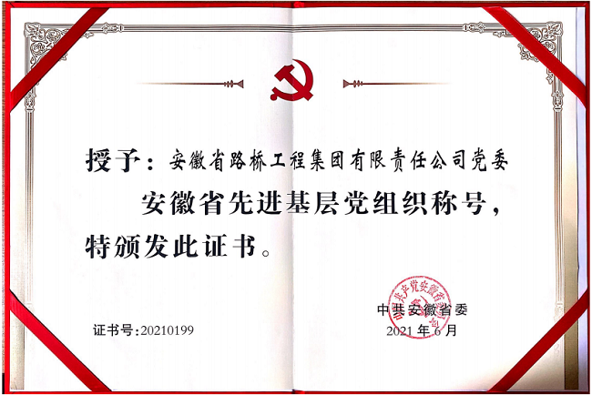 值此建黨100周年之際,安徽路橋集團黨委榮獲安徽省“先進基層黨組織”稱號,既是表彰,更是激勵。關山初度塵未洗,策馬揚鞭再奮蹄。凝心聚力、勵精圖治的安徽路橋集團黨委,正以百倍的信心和干勁,帶領全體干部職工緊扣“百億路橋集團”目標,奮力譜寫公司改革發展時代新篇章!