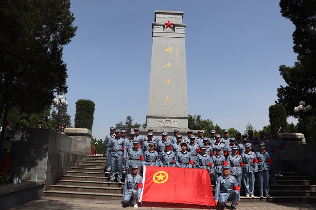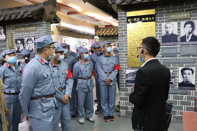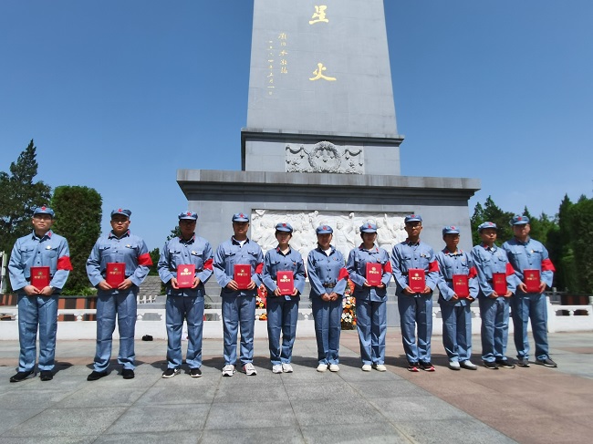 在統一換上紅軍服裝后,青年團員們首先來到金寨紅軍文化廣場。在革命烈士紀念塔下,面對鮮艷的中國共產主義青年團團旗,公司團委書記帶領到場青年團員重溫入團誓詞,牢記初心使命,緬懷革命先烈,傳承五四精神,并對榮獲公司2020年度“五四紅旗團支部”與“優秀團員”的集體與個人進行了表彰。