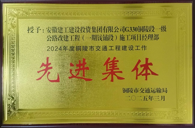 近日,銅陵市交通運輸局召開2025年全市交通運輸工作暨交通運輸系統黨風廉政建設會議,G330銅陵段一級公路改建工程項目部榮獲2024年度交通工程建設先進集體榮譽稱號。