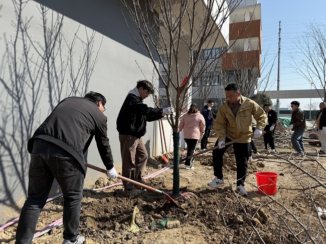 在植樹活動現場,大家熱情高漲,干勁十足。項目班子及黨員干部率先垂范,拿起鐵鍬,揮鍬鏟土、扶苗填坑、踏土夯苗,每一個環節都做得認真細致。在他們的帶領下,大家紛紛行動起來,兩人一組、三人一隊,分工協作,配合默契。有的揮鍬挖土,有的運送樹苗,有的澆水灌溉,各個環節銜接有序。經過大家共同的努力,一棵棵新苗在春風中挺拔而立,煥發出勃勃生機和綠色希望。
