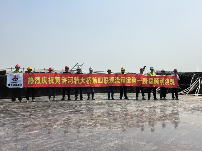 黃滸河特大橋全長1123.5m,共8聯。第四聯采用變截面現澆預應力混凝土連續箱梁結構,本次澆筑位置為第四聯第一階段,長度為20米,混凝土澆筑方量達391m3。