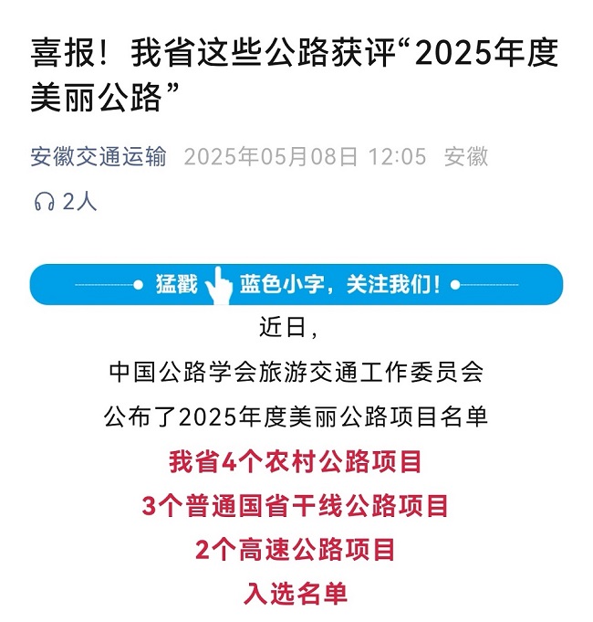 近日,中國公路學會旅游交通工作委員會公布了“2025年度美麗公路項目名單”,安徽省4個農村公路項目、3個普通國省干線公路項目、2個高速公路項目入選名單。由建工建投集團承建的G4012溧寧高速黃山至千島湖安徽段成功獲評!