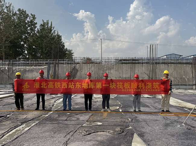 經過18個小時的連續奮戰,6月17日00點48分,建工建投集團淮北高鐵西站站前廣場東地下車庫首塊筏板順利澆筑,標志著該項目地下車庫工程正式進入主體施工階段。
