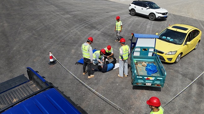 本次演練以“預防事故、守護安全”為目標,模擬一輛小轎車與三輪車在十字路口發生碰撞,致使車上人員受傷情景。事故發生后,項目部立即啟動應急預案,各小組迅速集結響應,完成警戒設立、車輛疏導、傷員救治、通訊聯絡、資料收集及善后處置等環節,演練流程緊湊,各小組分工明確、配合默契,高效完成事故處置全流程,配合有序,應急處置效果良好。