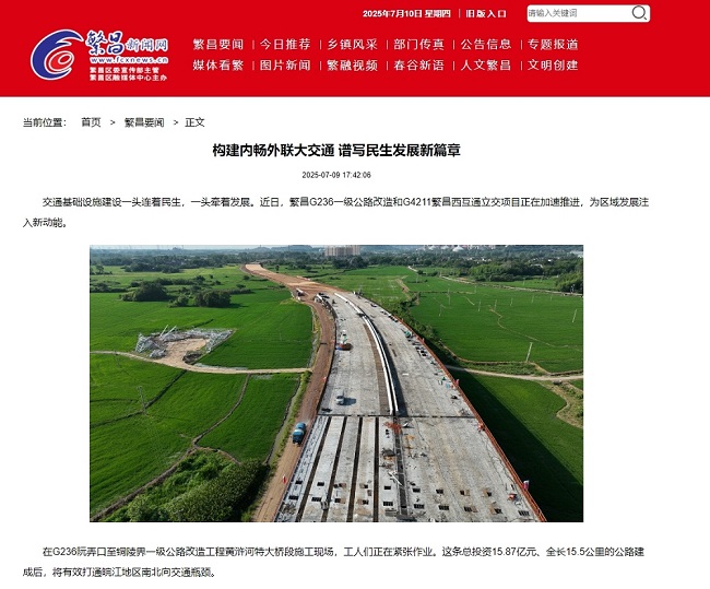 繁昌區G236項目建設對完善區域路網結構、提升交通通行效率具有重要戰略意義。目前,項目正按照既定計劃高效推進,向著全線通車目標穩步邁進。