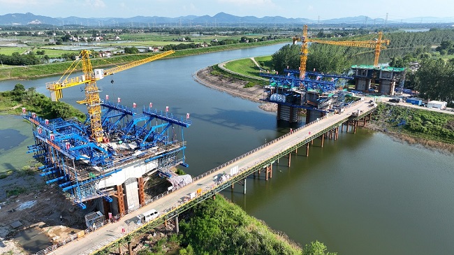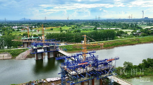 近日,人民網以《安徽蕪湖:G236黃滸河特大橋建設正酣》為題,以圖片新聞形式對建工建投集團承建的繁昌區G236項目黃滸河特大橋建設進展進行報道。