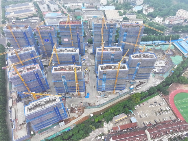 截至目前,S20長豐至固始高速公路霍邱至皖豫界段02標項目路基清表完成19.3%,樁基施工突破630根(達總量42.2%),承臺、墩柱等下部結構同步推進;蜀山高科模數科技港項目正在進行各樓棟主體結構施工,1# 樓主體完成35%,2#樓率先封頂,4#-7#樓在全面推進主體封頂;蜀山區SS11-G-05-02號地塊項目13棟單體建筑同步推進:內、外墻抹灰作業已完成總量的50%,窗戶附框安裝率率先達成100%,外墻保溫層鋪設進度突破50%,電梯廳、樓梯間等公共區域裝修全面啟動;將軍嶺路(習友路—銘傳路)項目承臺完成10%、墩柱完成6%,現澆箱梁支架搭設有序進行;五水廠一、二期深度處理工程項目5#清水池清淤、綠化移植與場地清理等前期工作全面鋪開。